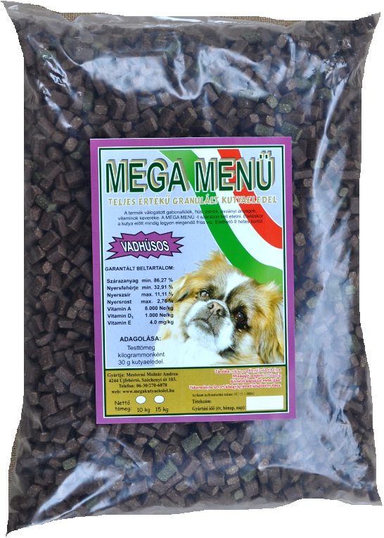 A Mega Menü Vadhúsos kutyaeledelt szárazon kell etetni.